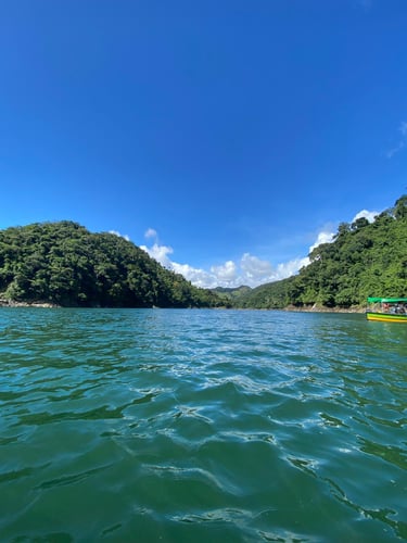 Entrada embalse Amaní en lancha hacia la presa patangoras